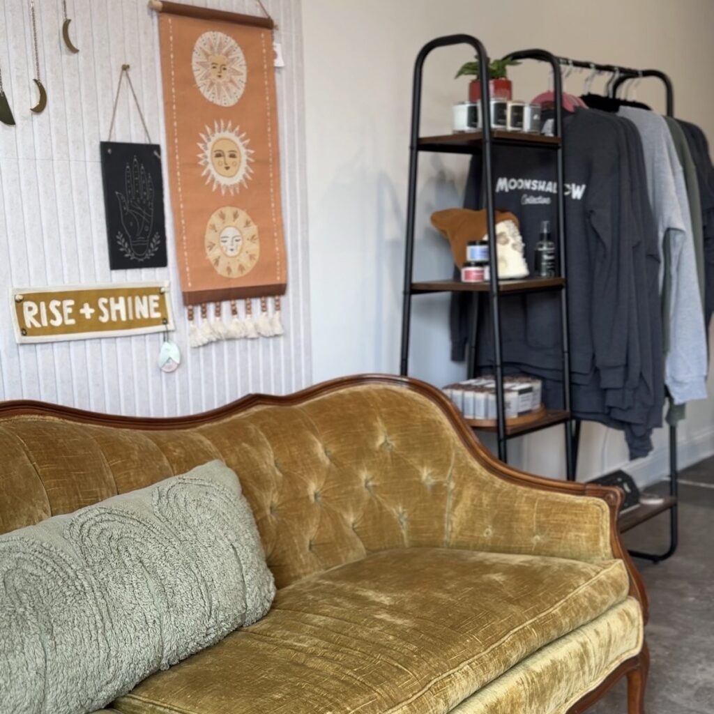 So when I finally made the trip to her new space, Moonshadow Collective in downtown Sykesville, I already knew it would be good. I didn’t expect to get emotional. I walked in, and the first thing she said was, “How are you?” And I pulled up a chair and just… exhaled. That’s the kind of place it is.